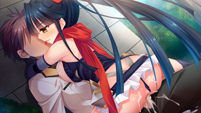 - 黒髪ポニーテールのスカア・クロウが野外で主人公の背後から乳房を押し付けて抱きつきチンコを丸出しにして手コキし射精させる